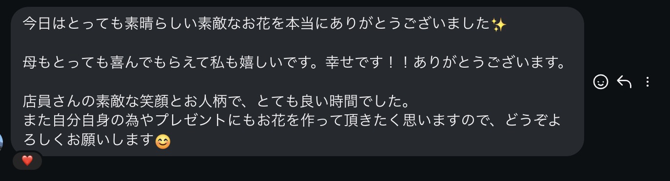 後日、お客様より心温まるメッセージを頂戴しました。